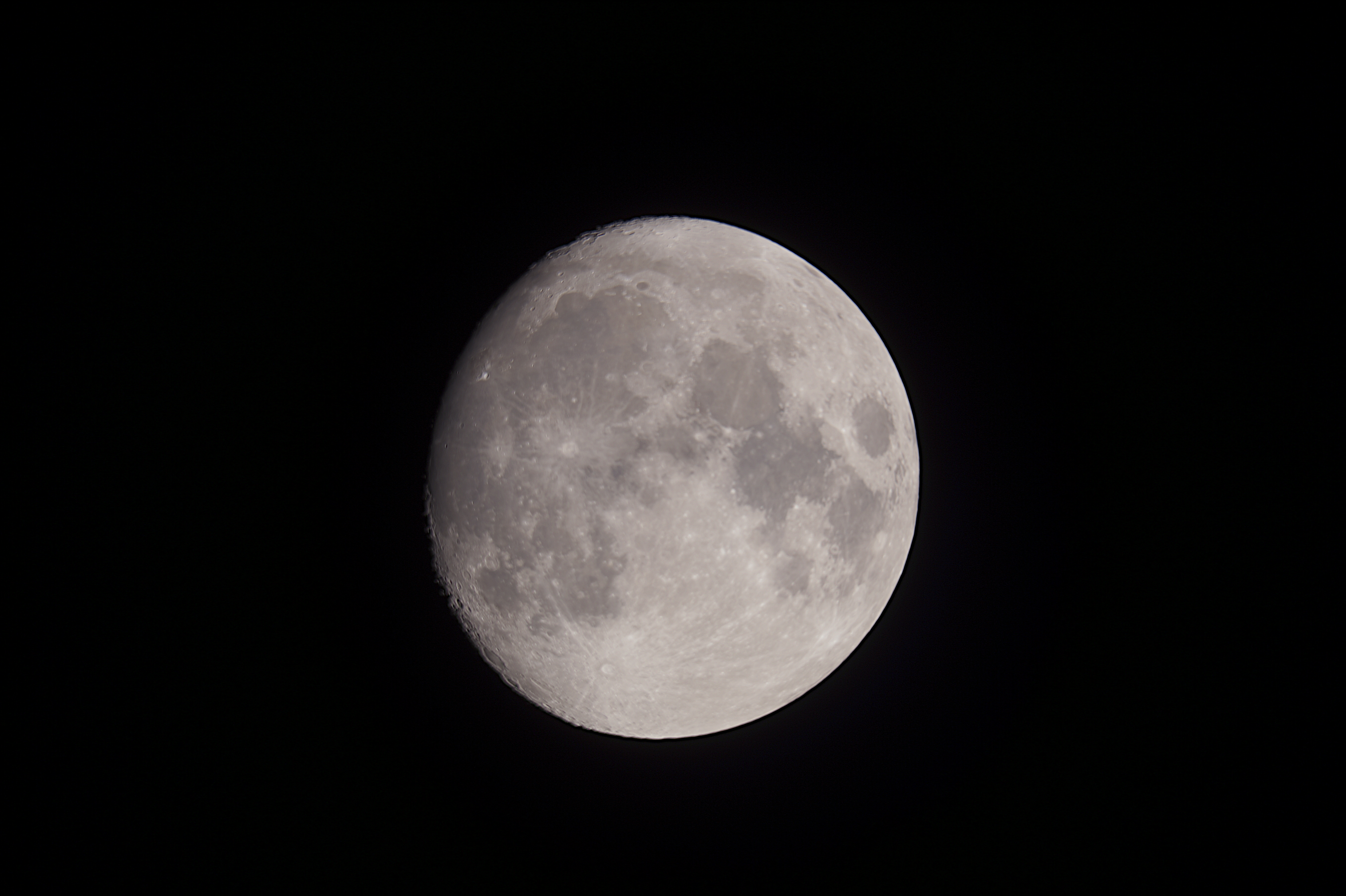 Bild 1: Aufnahme des Mondes am 27.11.2020, 21:30 Uhr mit einem Meade LX200 mit Fokalreduzierer auf f/6.3; Belichtung etwa 1/100, ISO 100.
