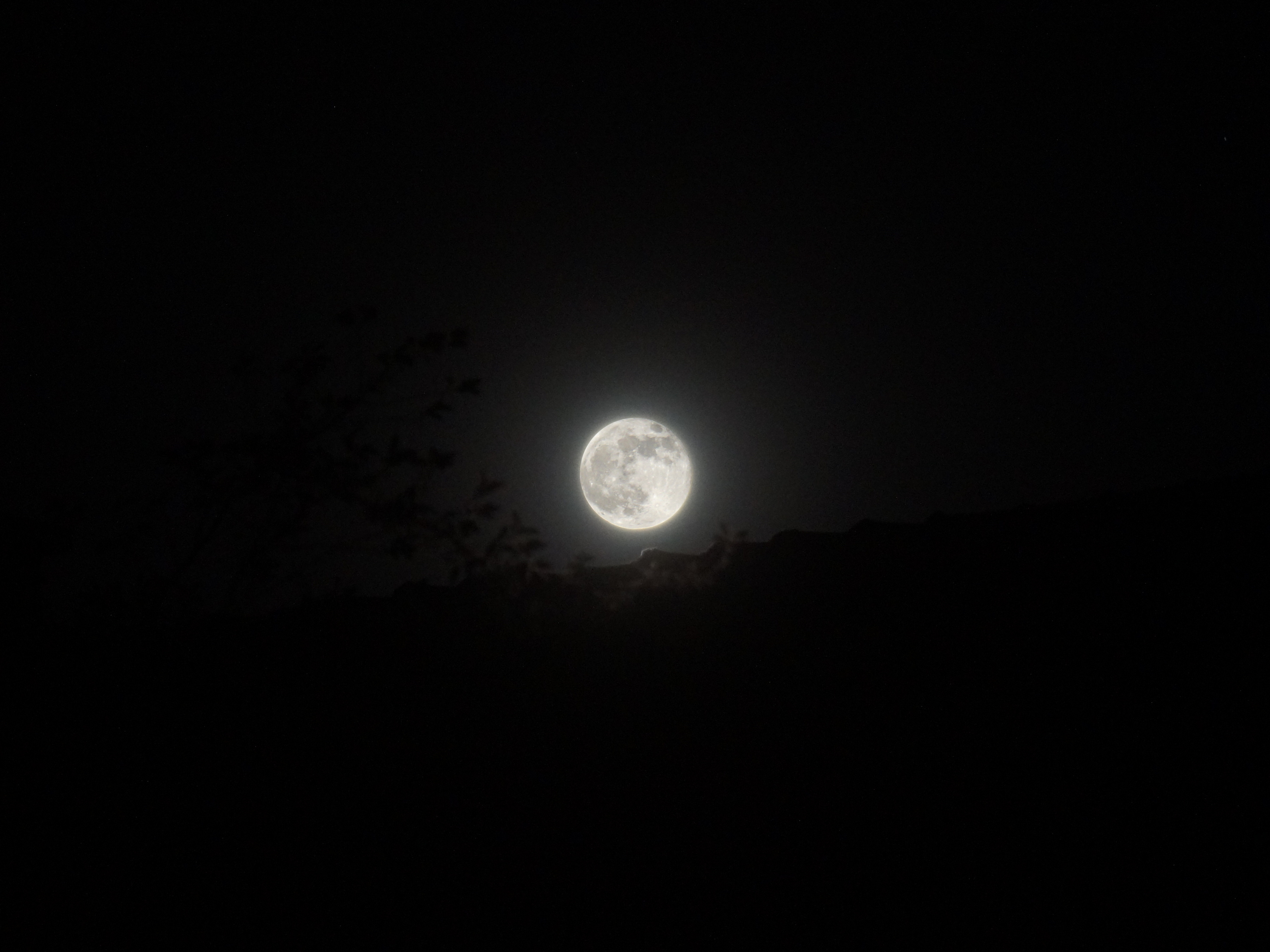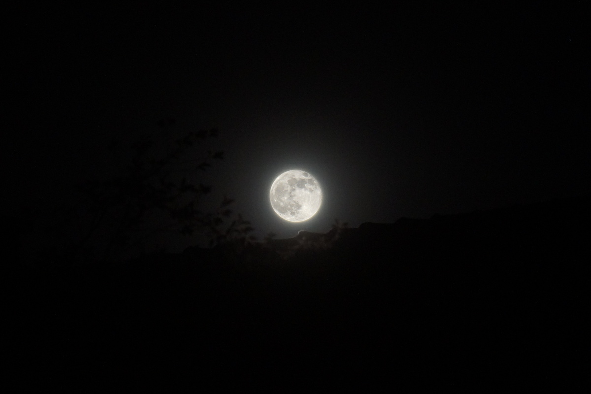 Bild 2: Komposit aus zwei Bildern: Dachfirst mit 1/30s, ISO 1600; Mond mit 1/320s, ISO 100. Abgebildet ist der "Supermond" (Pink Moon) von Ende April 2021. Fotos mit Sony a58, 202 mm.