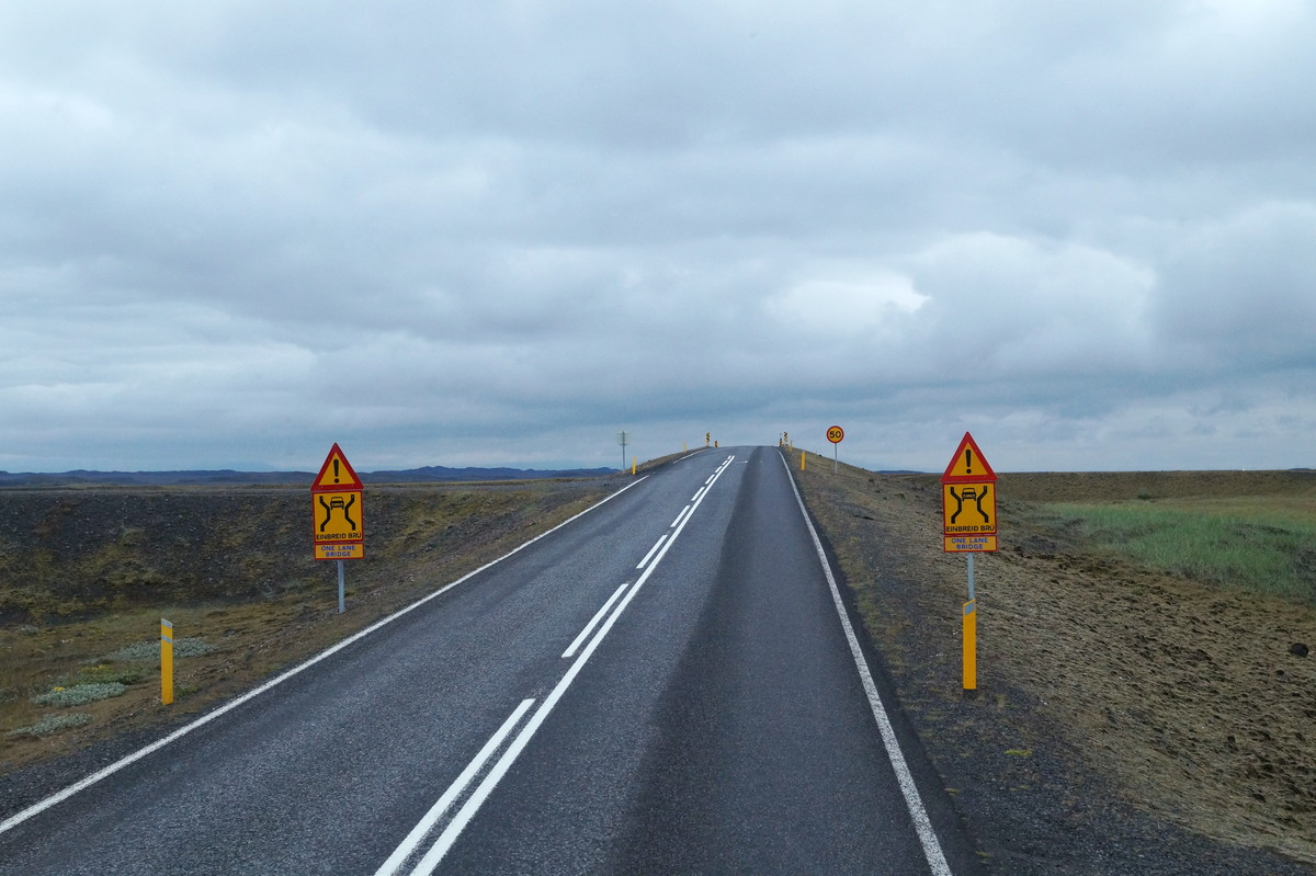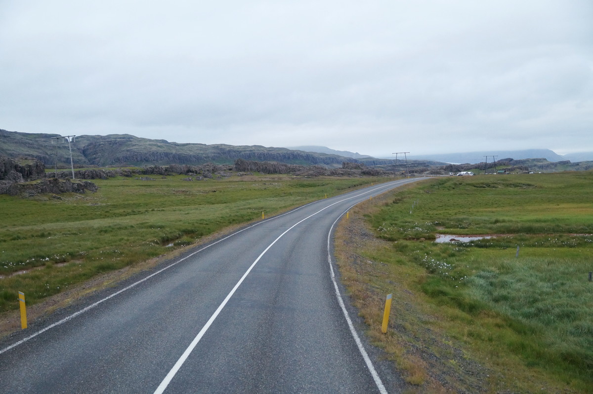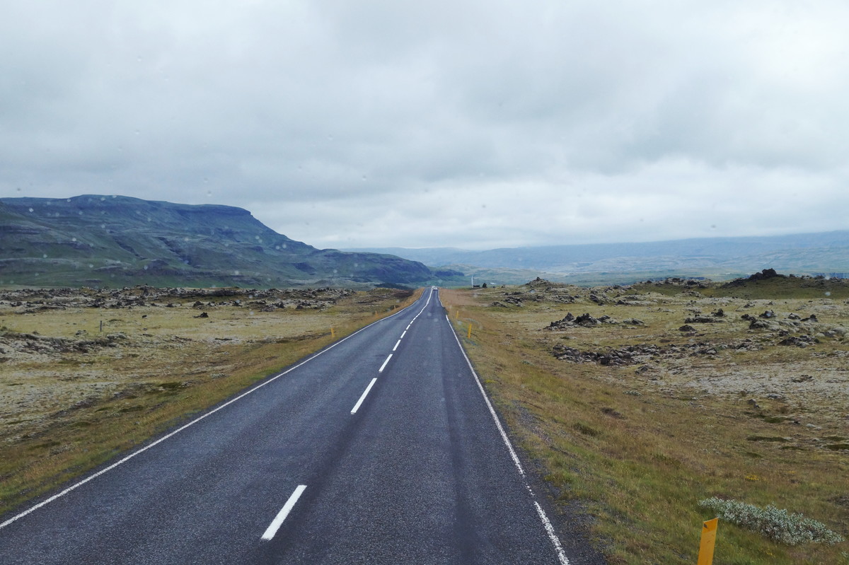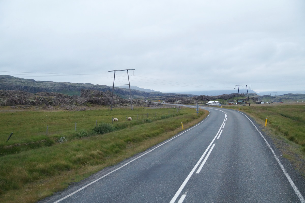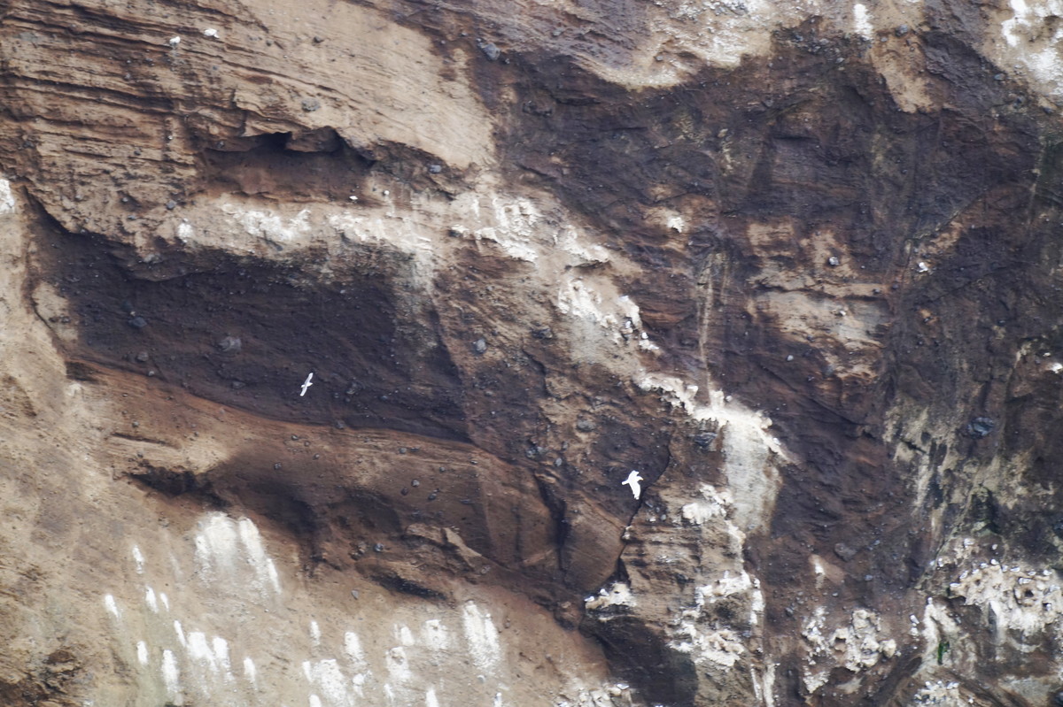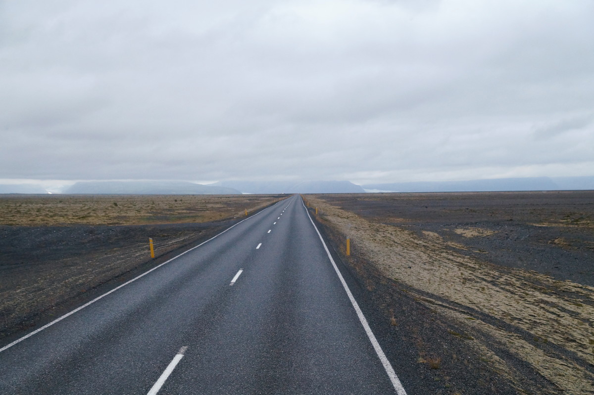 Die Fahrt geht weiter der Küste entlang, über zahllose weit ausgestreckte Sander (Lava-Sandfelder, Schotterebenen). Wir treffen an einer besonders eindrucksvollen Bucht ein, der Dyrhólaey ("Tür-Loch-Insel"). Dort finden sich schroffe Felsen, endlose Blicke über die Küste, aber auch Papageitaucher en masse. Wir fahren mit dem Bus um die Lagune herum zum Reynisfjall, an dessen Fuß sich eine Wand aus Basaltsäulen auftürmt. Der Sand ist völlig schwarz hier. Wieder geht es weiter, diesmal zum Hótel Búrfell in Steig, ein paar Kilometer die Straße zurück.