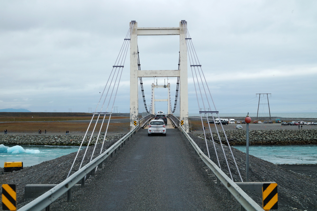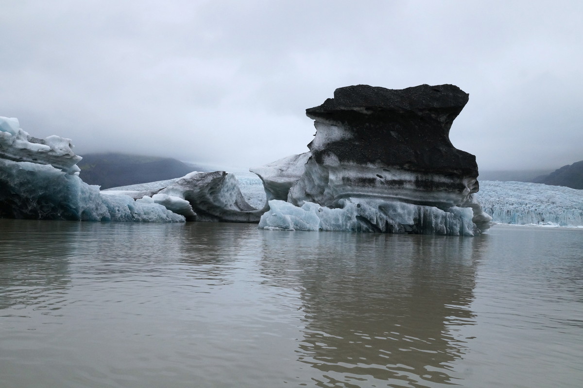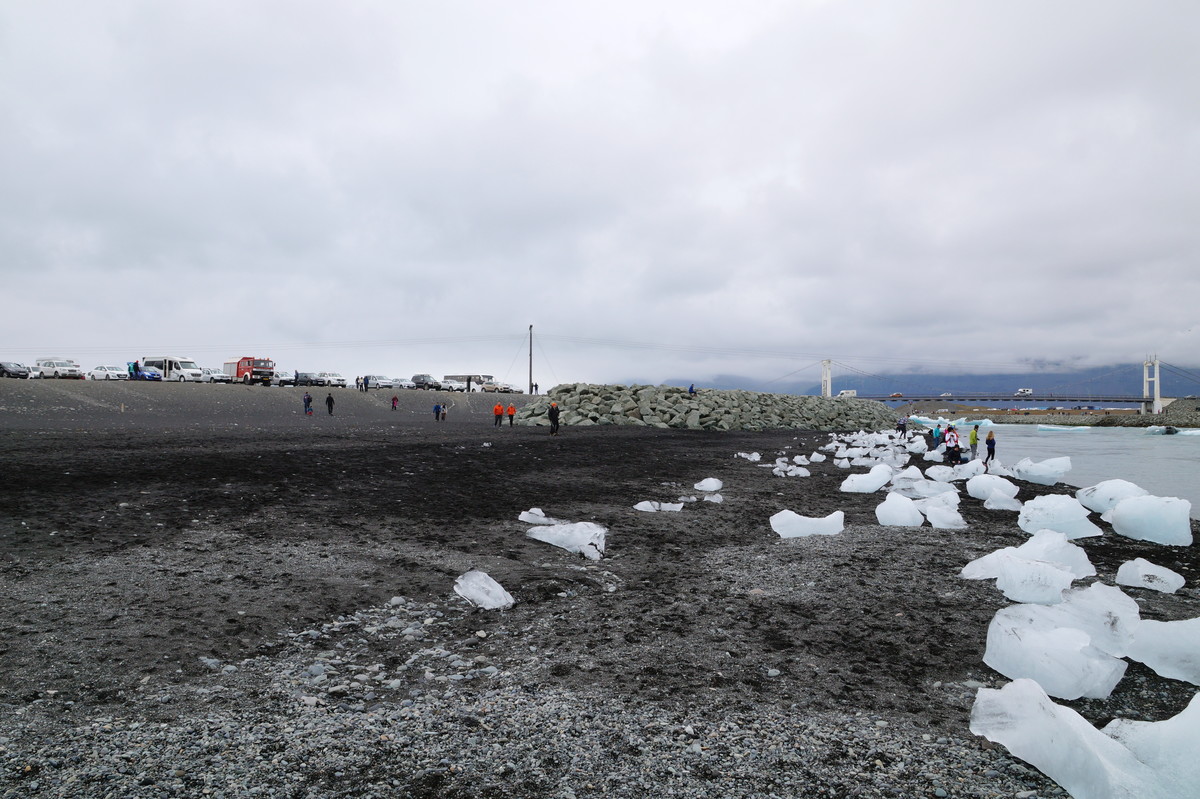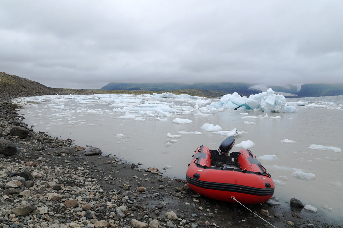 Nächster Stopp ist die Gletscherlagune Fjallsárlón. Mit Schlauchbooten lassen wir uns über die Lagune fahren und schauen uns das Ende des mächtigen Fjallsjökull an. Auf einmal gibt es einen Knall, und ein Stück des Gletschers bricht ab und fällt nicht weit vor uns in die Lagune. Nach diesem Erlebnis machen wir an der Mündung des Jökulsárlón noch einmal Halt und beobachten, wie kleine Eisberge ins Meer gespült werden. Interessant: Die Lagune ist im James-Bond-Film "Stirb an einem anderen Tag" zu sehen; man ließ sie zufrieren, indem der Ausfluss blockiert wurde.
