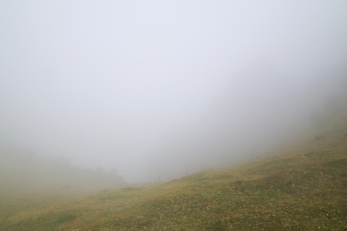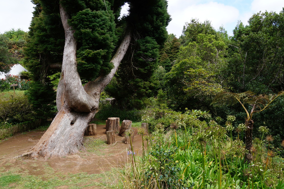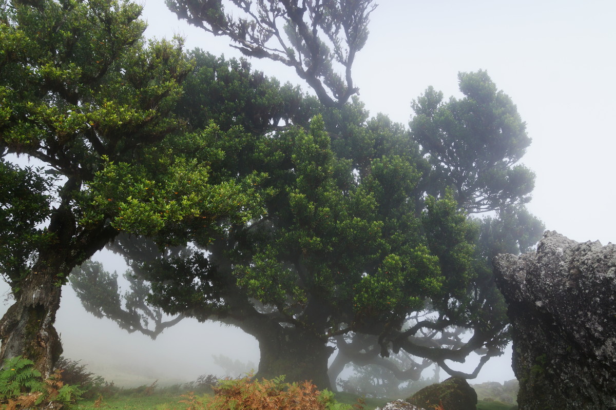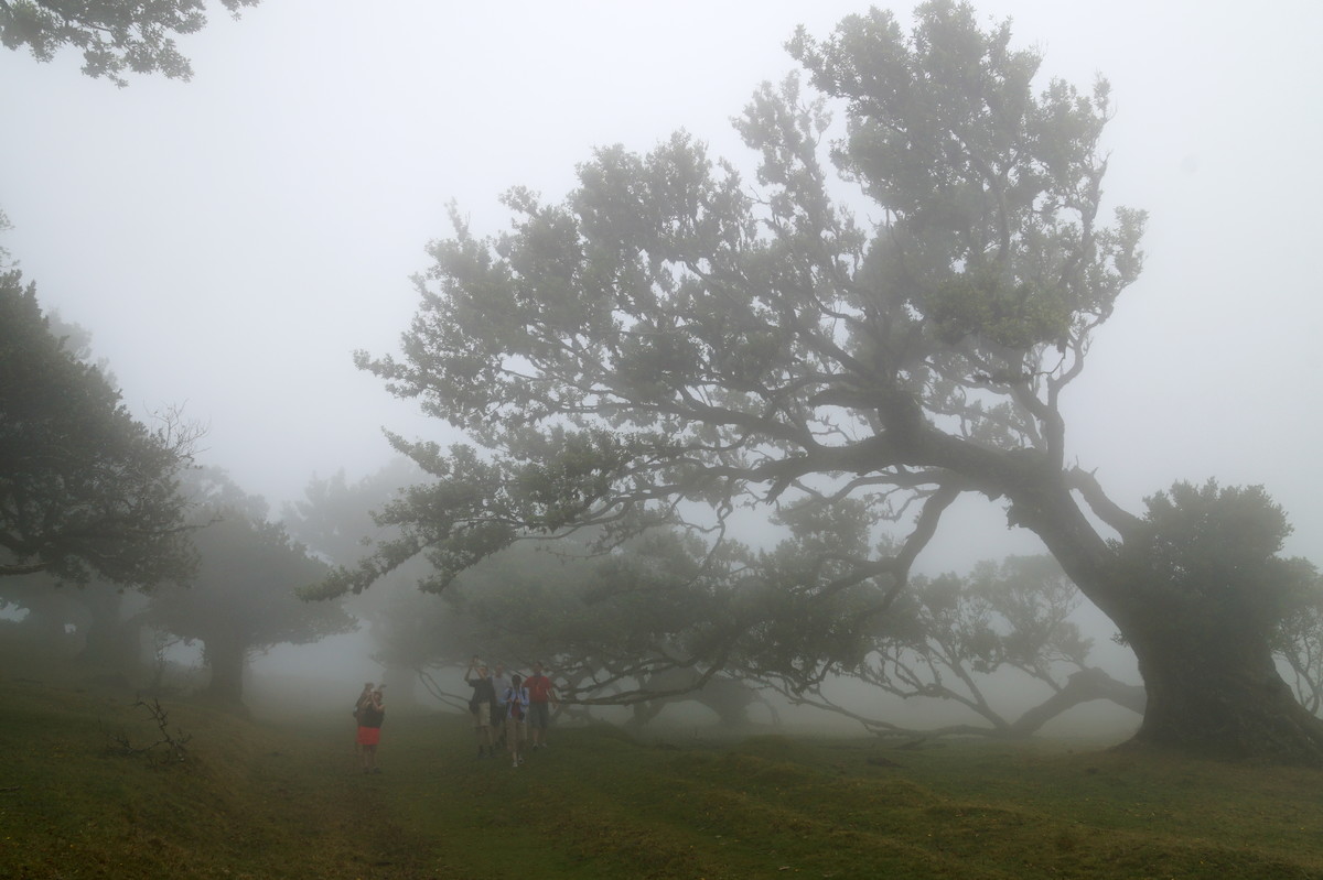 Der erste große Programmpunkt dieses Tages ist die Vereda do Fanal, ein Wanderweg. Am Rande der Hochebene gelegen kann man endlich den Blick in die Ferne schweifen lassen ... wenn der Nebel nicht wäre, und davon gibt es hier reichlich. Zwischendurch klart es immer mal kurz auf, aber der Nebel verschwindet erst, als wir den Bus wieder erreichen. Betrachtet man es etwas positiver, so hat der Nebel schon zu einer geheimnisvollen Stimmung beigetragen, unterstützt von den knorrigen Bäumen.