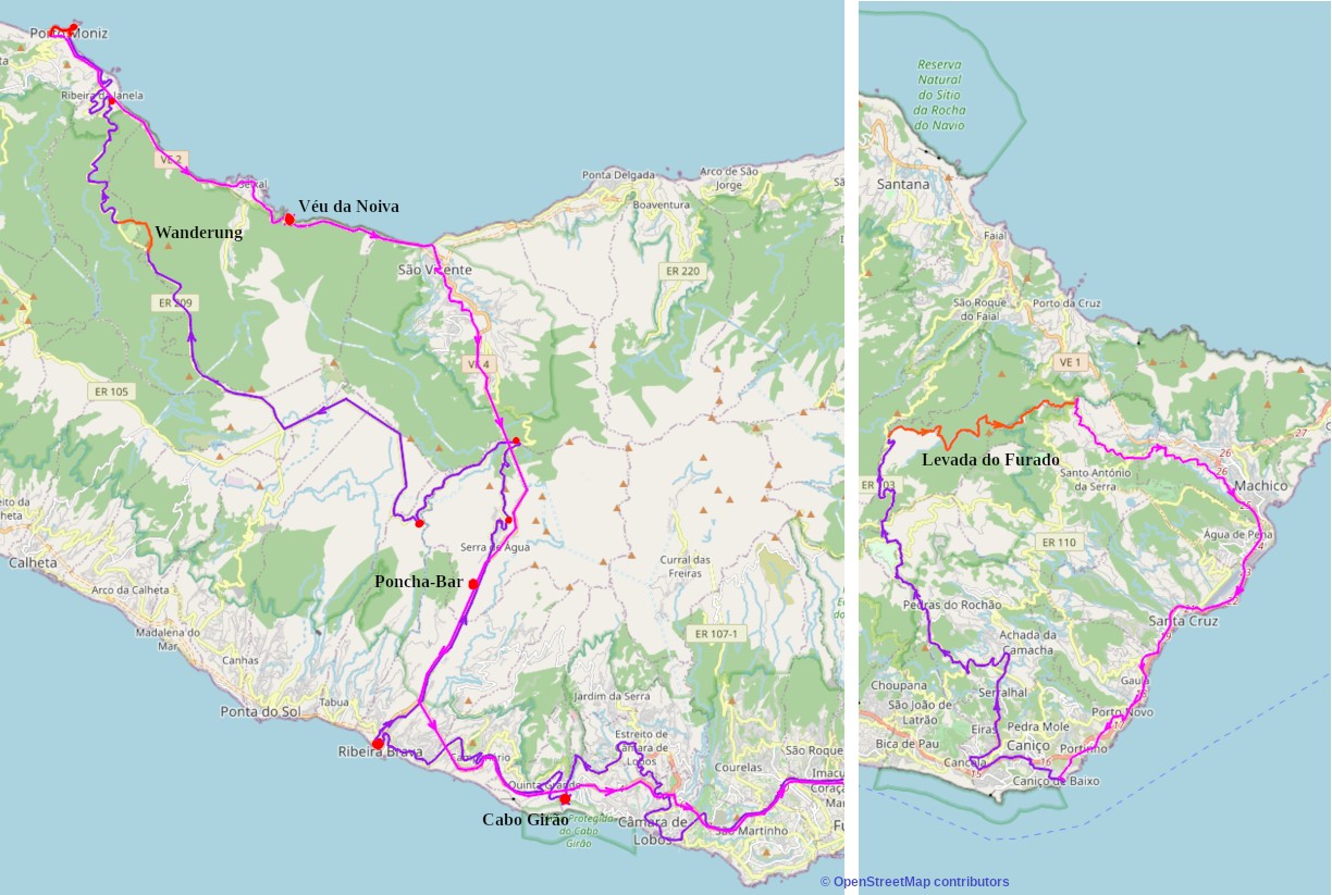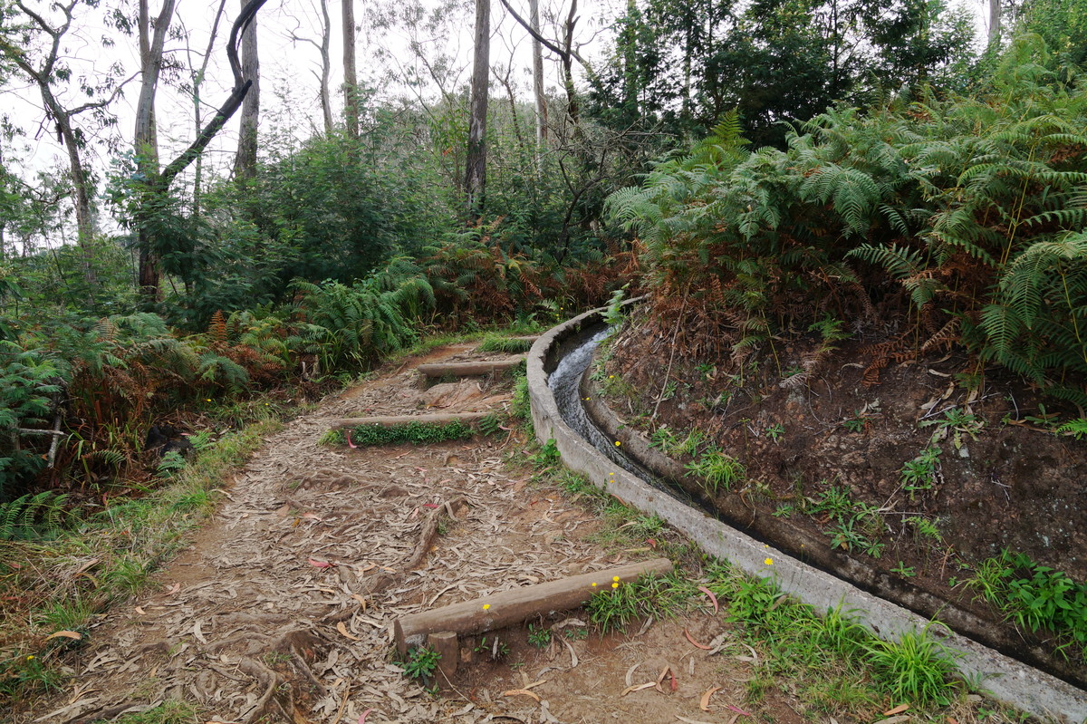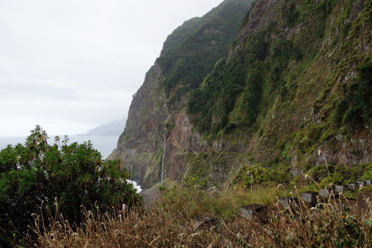 Die Wanderung nimmt fast 4,5 Stunden in Anspruch, belohnt uns aber immer wieder mit schönen Ausblicken hinab bis zur Küste. Kurz vor Ende teilt sich die Levada auf; wir folgen der Levada da Portela weiter. Am Ende des Wegs wartet wieder ein Kaffee im Lokal Portela a Vista.