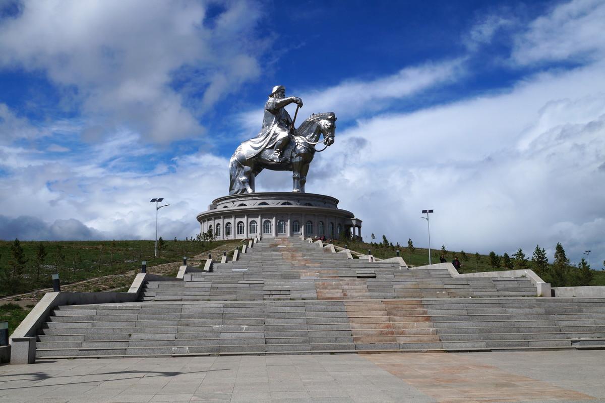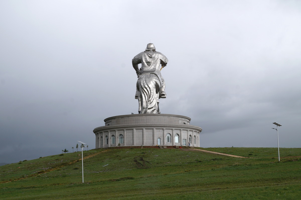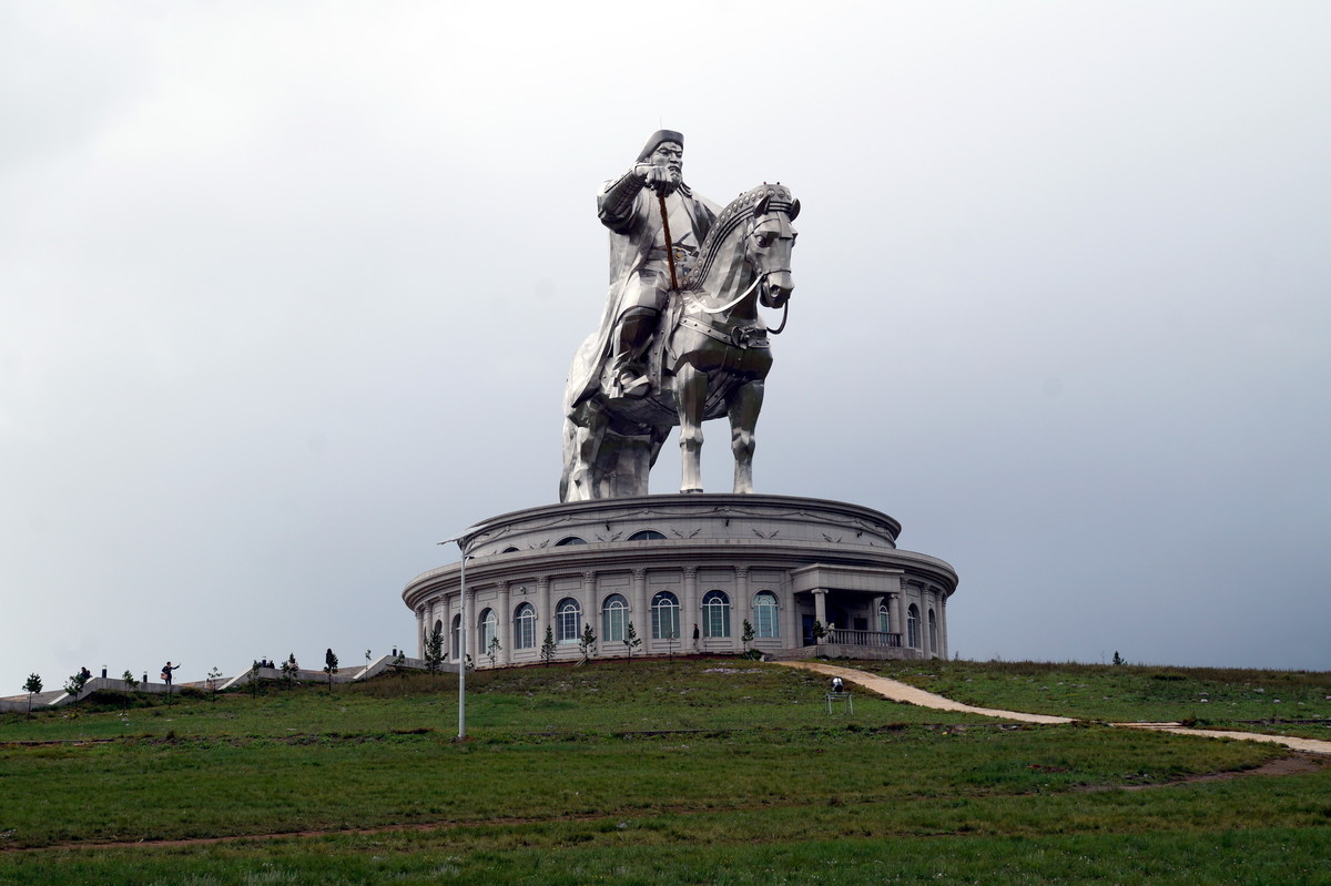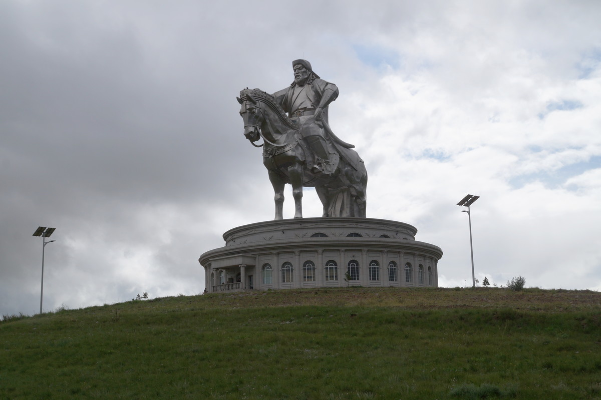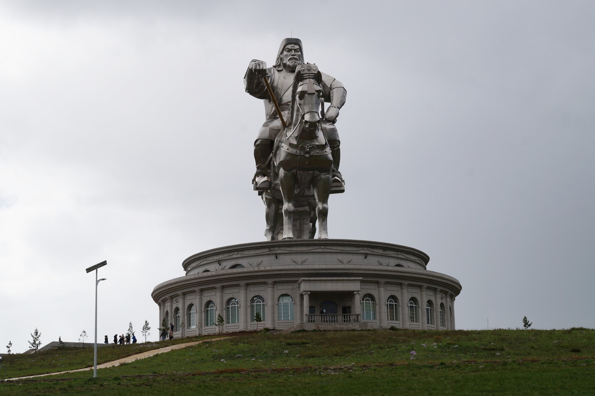 Khan-Khentii-Nationalpark (Töv). Wir erreichen den Khan-Khentii-Nationalpark und treffen auf das Dschingis-Khan-Museum samt riesigem Reiterdenkmal. Dies hier soll der Geburtsort des Mongolenherrschers gewesen sein. Was das Ganze etwas weniger monumental macht, ist, dass die Anlage erst im Jahre 2007 gebaut wurde. Moderne Geschichte. Am Schildkrötenfelsen vorbei geht es zum Meditationszentrum Aryabal. Dort hat man einen wirklich erhabenen Ausblick auf die Landschaft.