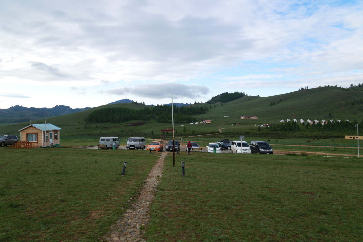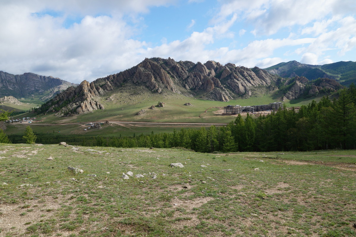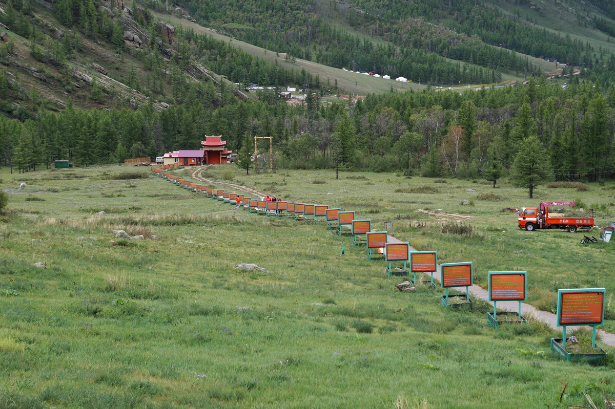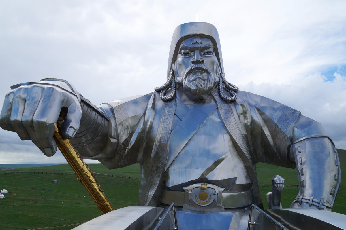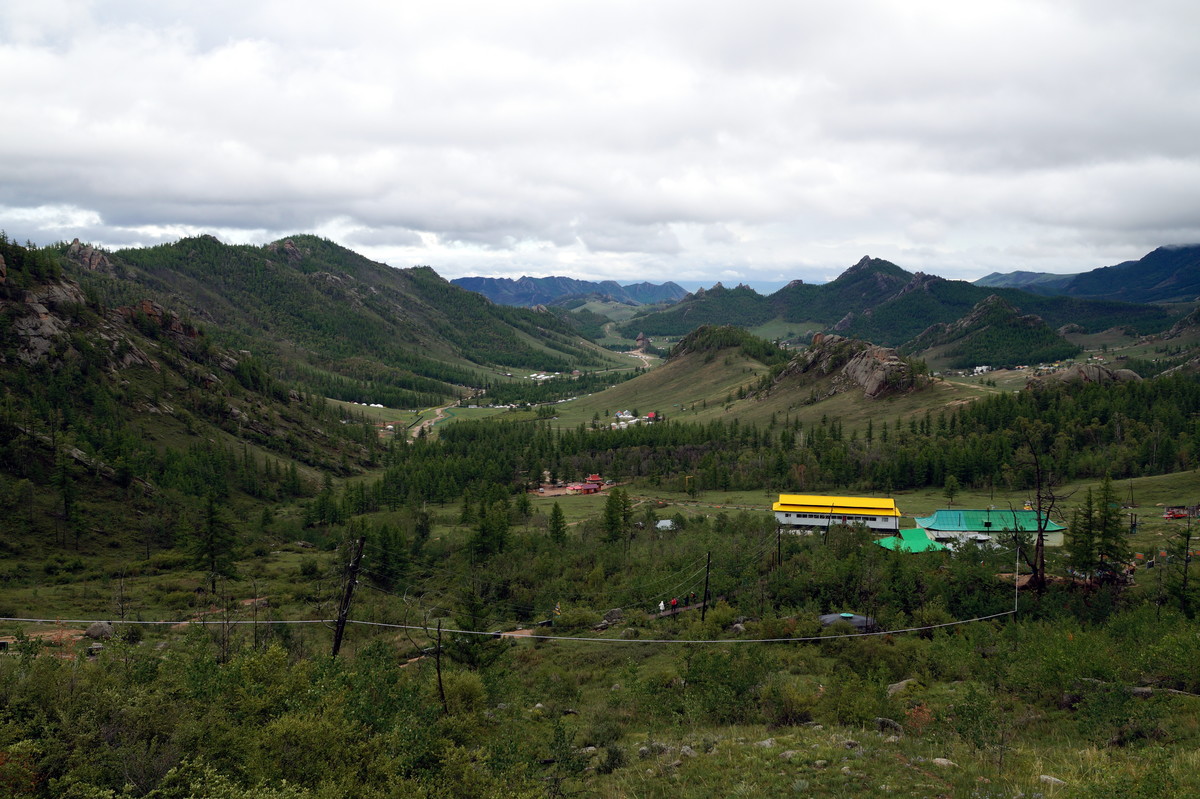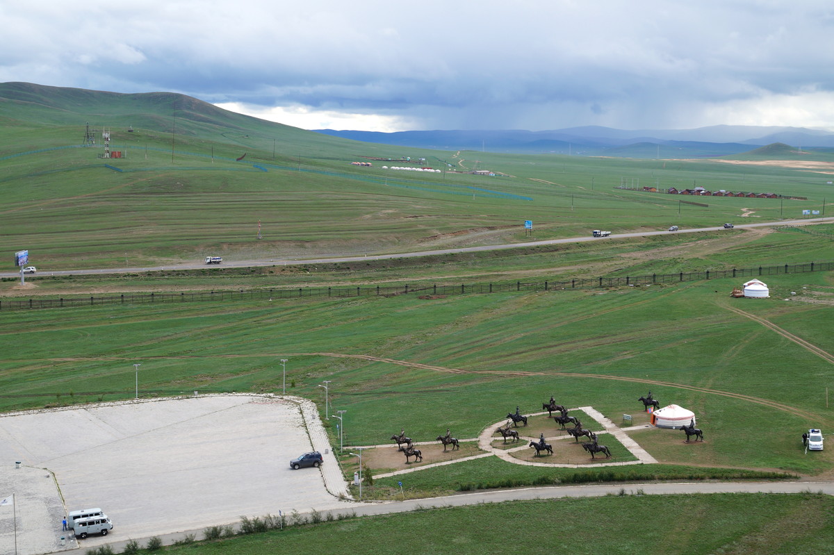 Khan-Khentii-Nationalpark (Töv). Wir erreichen den Khan-Khentii-Nationalpark und treffen auf das Dschingis-Khan-Museum samt riesigem Reiterdenkmal. Dies hier soll der Geburtsort des Mongolenherrschers gewesen sein. Was das Ganze etwas weniger monumental macht, ist, dass die Anlage erst im Jahre 2007 gebaut wurde. Moderne Geschichte. Am Schildkrötenfelsen vorbei geht es zum Meditationszentrum Aryabal. Dort hat man einen wirklich erhabenen Ausblick auf die Landschaft.