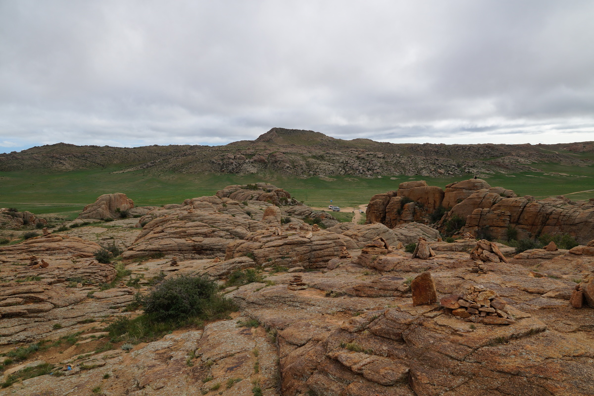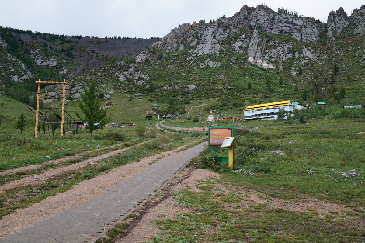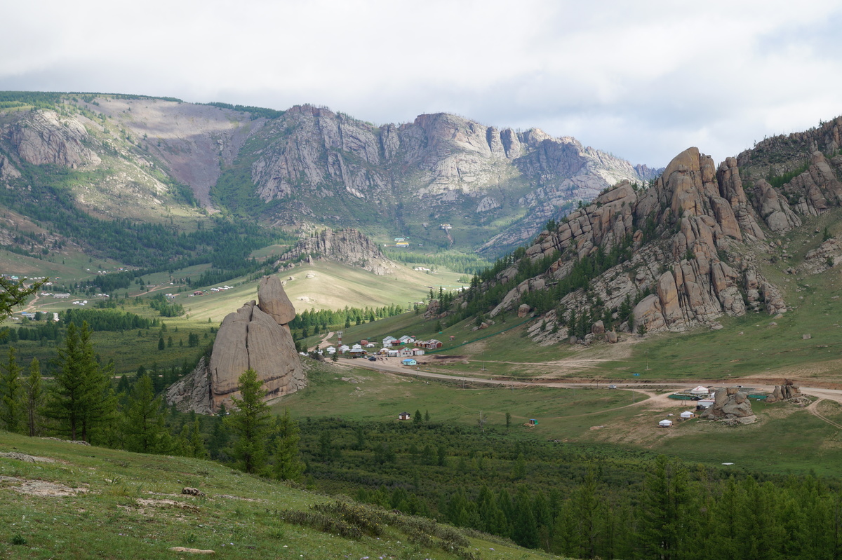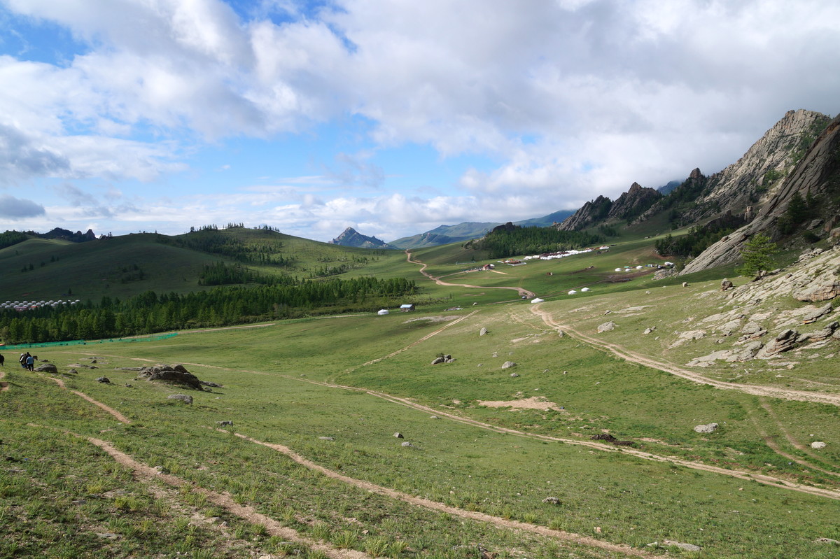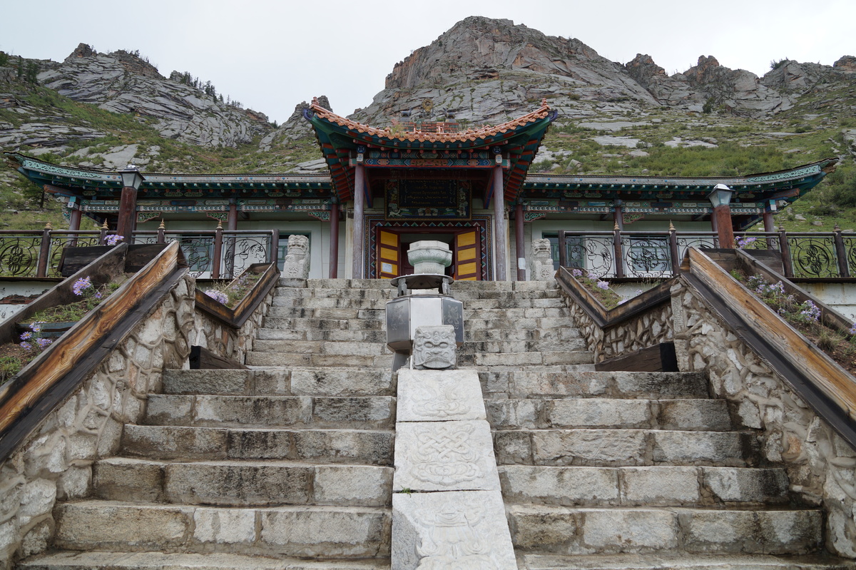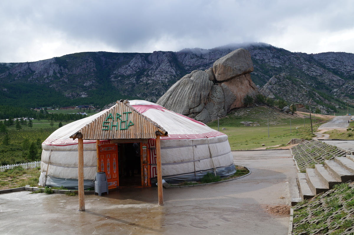 Khan-Khentii-Nationalpark (Töv). Wir erreichen den Khan-Khentii-Nationalpark und treffen auf das Dschingis-Khan-Museum samt riesigem Reiterdenkmal. Dies hier soll der Geburtsort des Mongolenherrschers gewesen sein. Was das Ganze etwas weniger monumental macht, ist, dass die Anlage erst im Jahre 2007 gebaut wurde. Moderne Geschichte. Am Schildkrötenfelsen vorbei geht es zum Meditationszentrum Aryabal. Dort hat man einen wirklich erhabenen Ausblick auf die Landschaft.