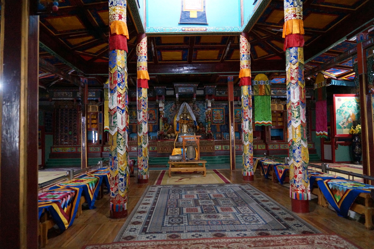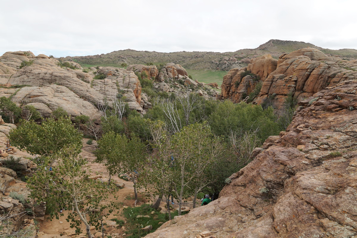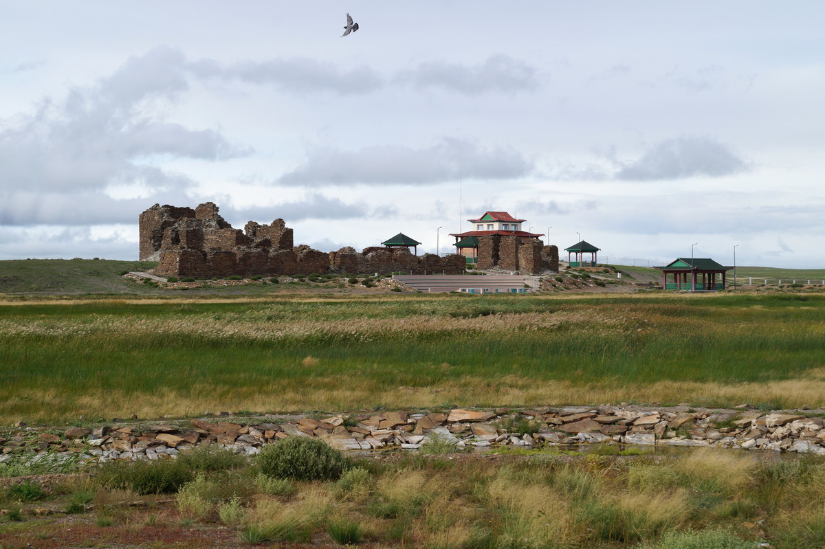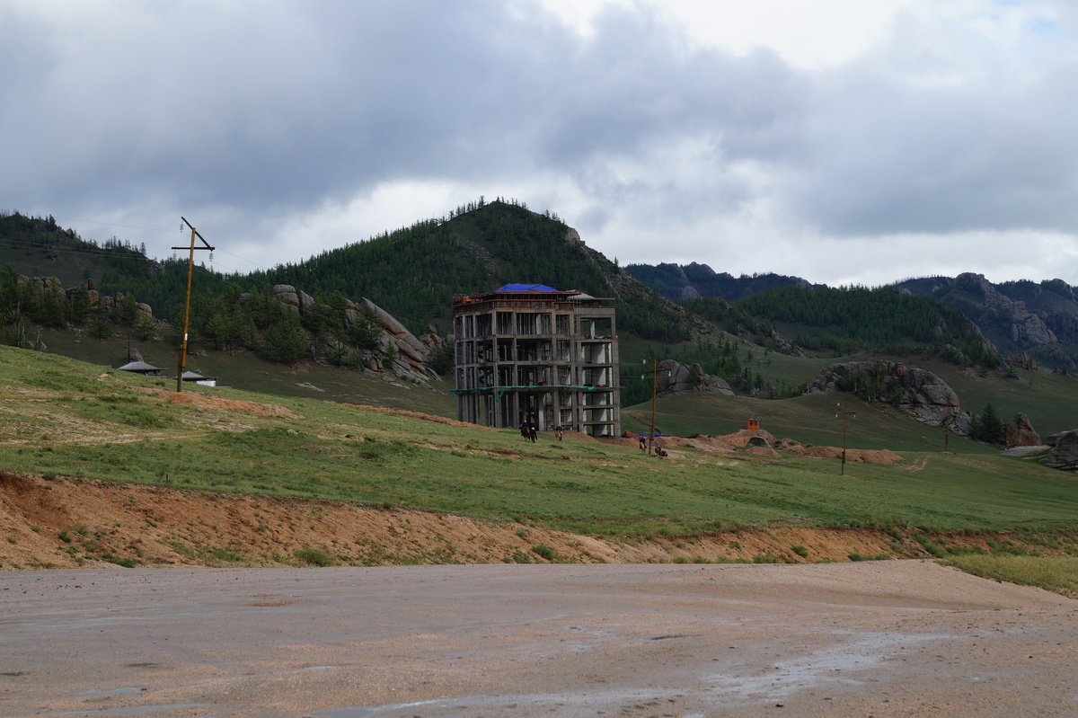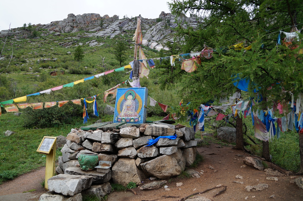 Khan-Khentii-Nationalpark (Töv). Wir erreichen den Khan-Khentii-Nationalpark und treffen auf das Dschingis-Khan-Museum samt riesigem Reiterdenkmal. Dies hier soll der Geburtsort des Mongolenherrschers gewesen sein. Was das Ganze etwas weniger monumental macht, ist, dass die Anlage erst im Jahre 2007 gebaut wurde. Moderne Geschichte. Am Schildkrötenfelsen vorbei geht es zum Meditationszentrum Aryabal. Dort hat man einen wirklich erhabenen Ausblick auf die Landschaft.