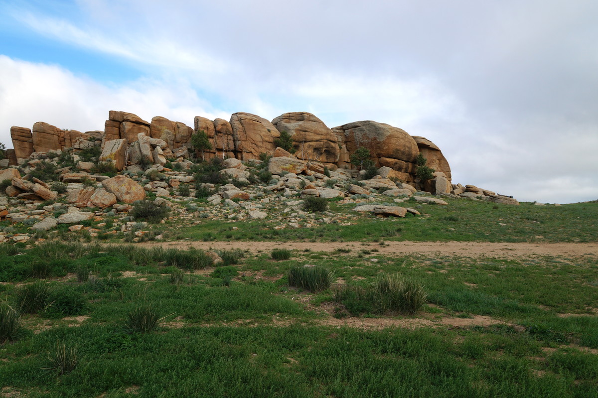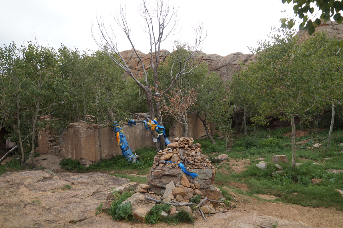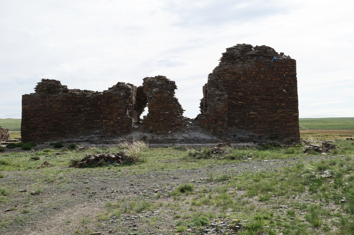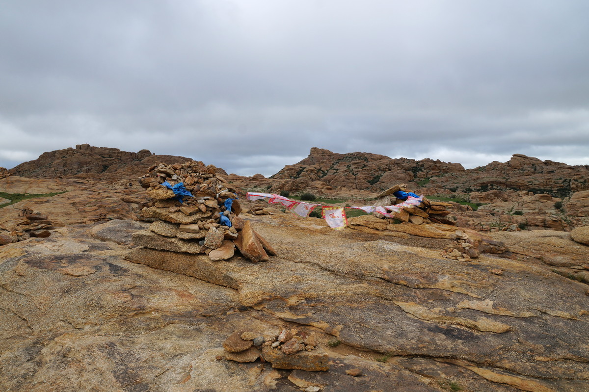 Süm Khökh Bürd (Dundgov'). Erster Stopp ist Süm Khökh Bürd, eine weitere Klosterruine, die sehr verlassen wirkt - auch von Besuchern. Wir schauen uns danach die imposante Felsformation Baga Gazriin Chuluu ("Stein des kleinen Landes") an, und kehren in unser nächstes Camp in unmittelbarer Nähe ein.
