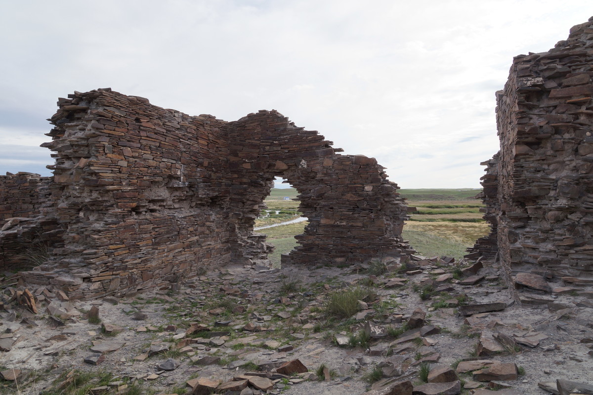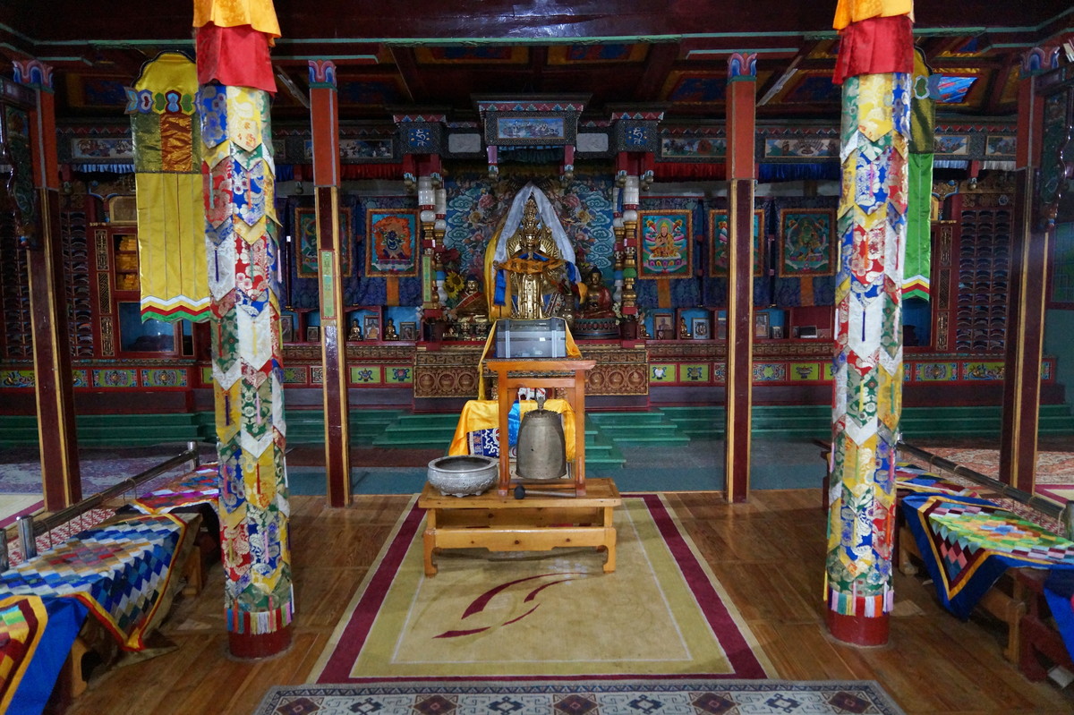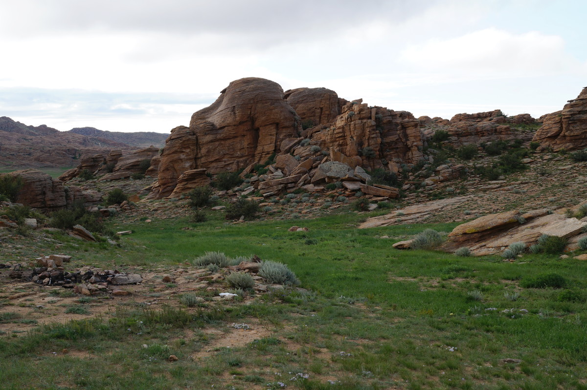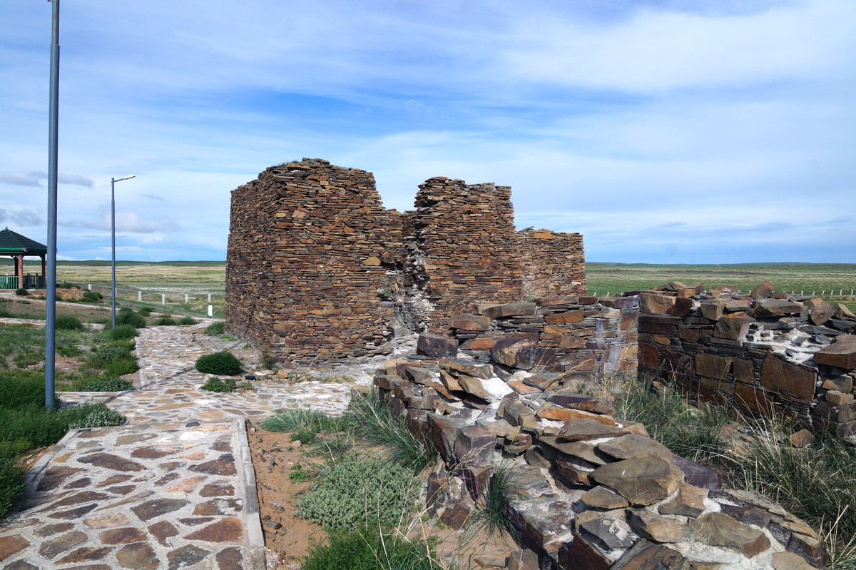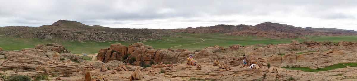 Süm Khökh Bürd (Dundgov'). Erster Stopp ist Süm Khökh Bürd, eine weitere Klosterruine, die sehr verlassen wirkt - auch von Besuchern. Wir schauen uns danach die imposante Felsformation Baga Gazriin Chuluu ("Stein des kleinen Landes") an, und kehren in unser nächstes Camp in unmittelbarer Nähe ein.