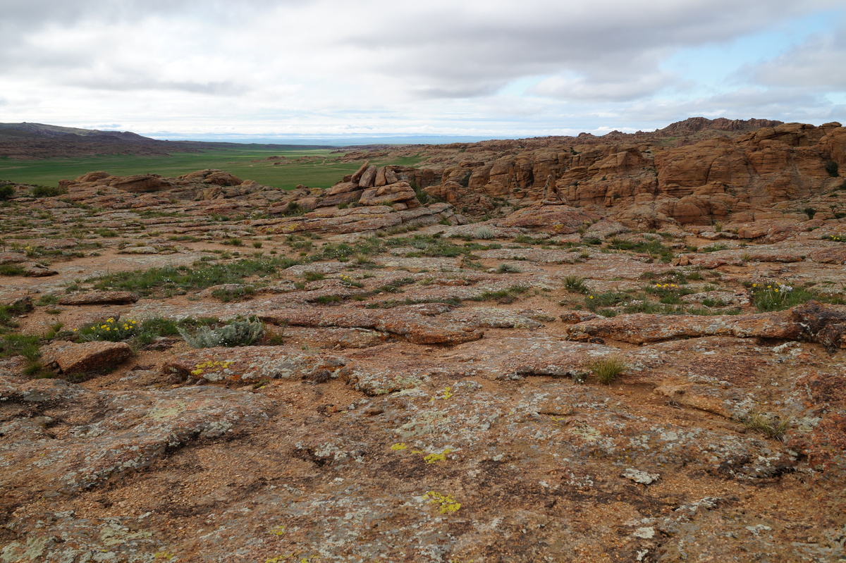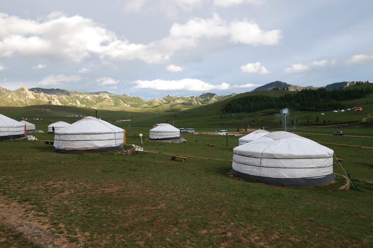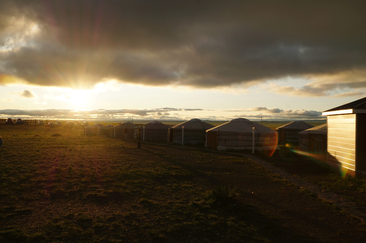 Wir beziehen unsere letzten Jurten im Mirage Tourist Camp. Diesmal gibt es wieder einen Ofen, aber leider auch Vieh, das sich beim Durchstreifen des Camps hier und dort erleichtert hat. Am Morgen machen wir noch eine kleine Wanderung um das Camp; wir finden Edelweiße und genießen einen letzten Blick auf die Landschaft, den Schildkrötenfelsen und das Meditationszentrum des Vortags.