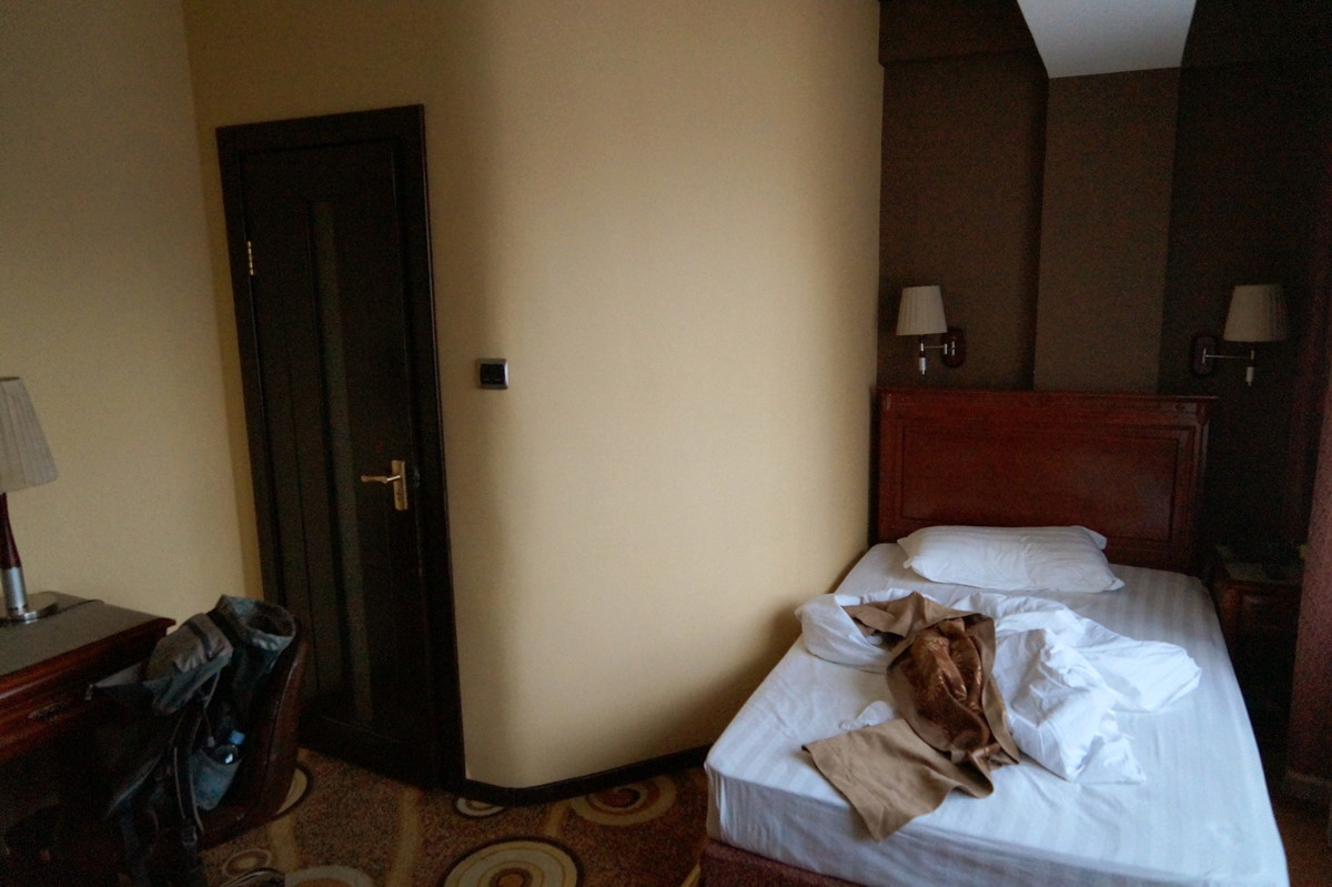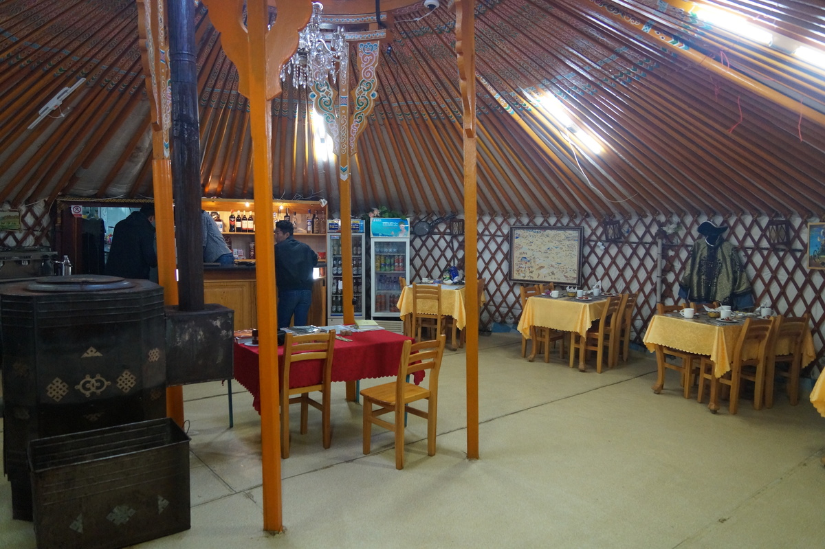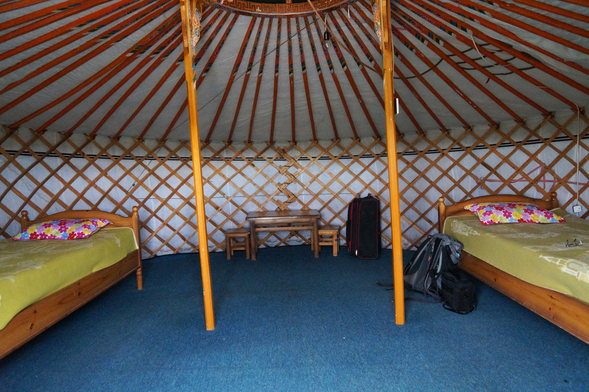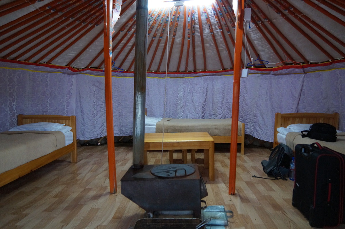 Überraschung: Die Jurte sieht so leer aus - es ist kein Ofen vorhanden, aber es ist August, was kann passieren ... Na ja, etwa, dass es morgens 11 Grad in meiner Jurte hat. Weiter geht es schnell Richtung Ulaanbaatar, und das Wetter wird auch schnell unangenehmer. Es fängt an zu graupeln, auf der Scheibe sammelt sich sogar Eis.