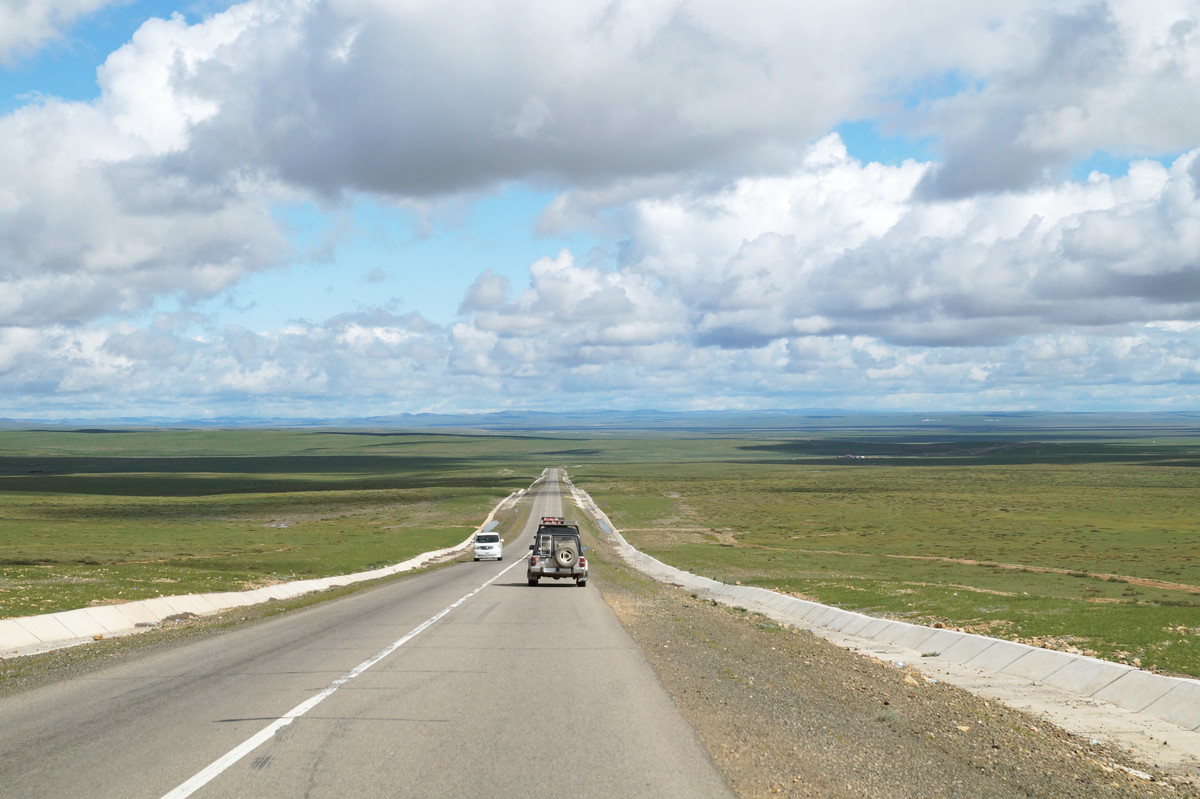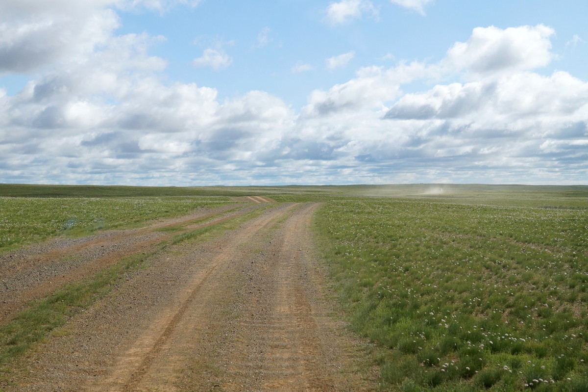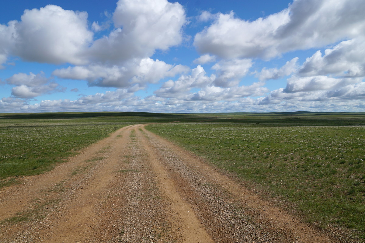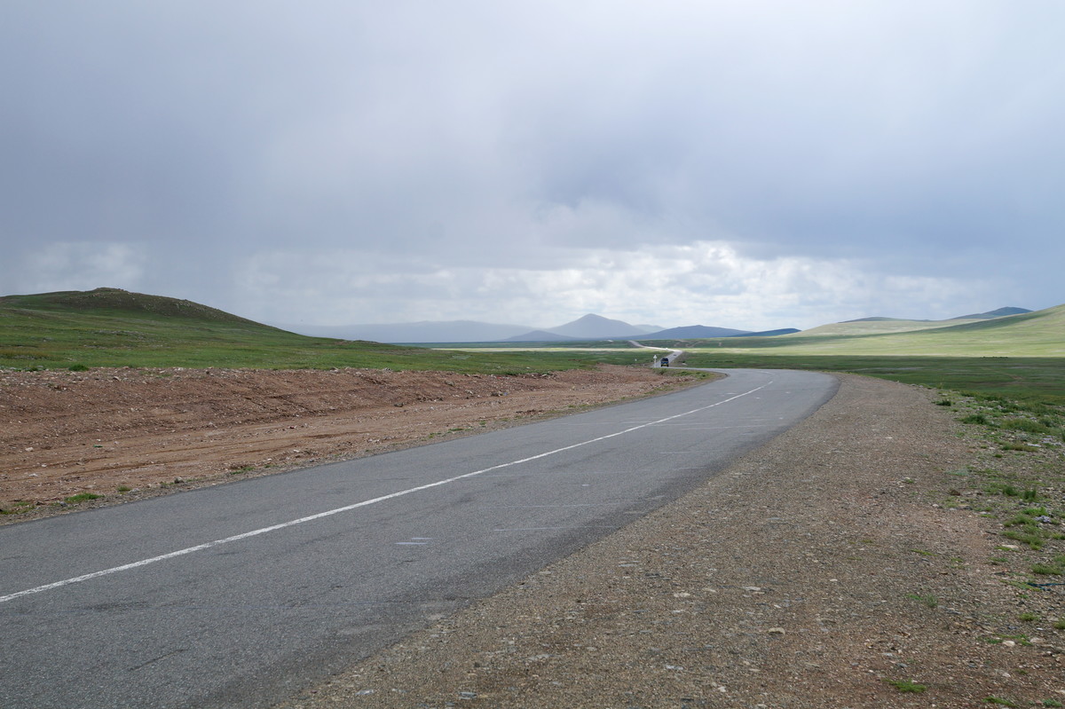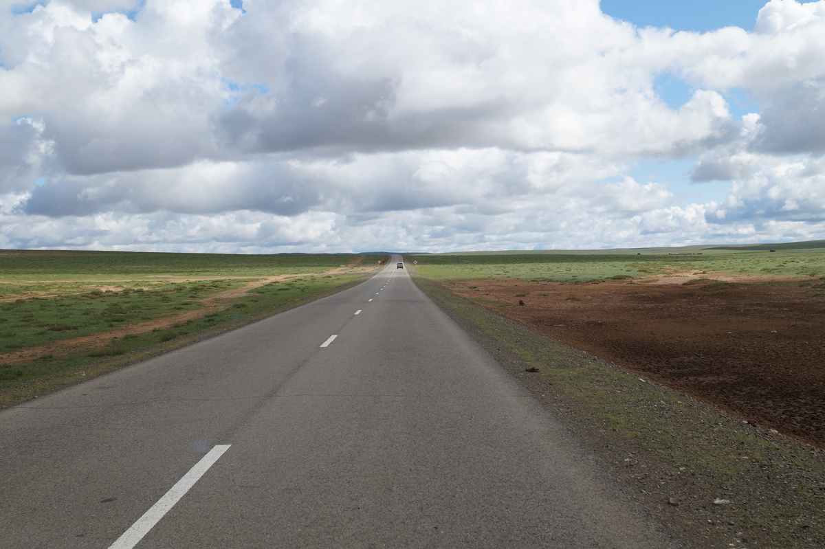 Diese Etappe sieht größer aus als die vorangehenden, aber das täuscht: Wir bewegen uns auf einer geteerten Straße nordwärts und legen daher viel Strecke zurück. Kurzer Stopp in Mandalgov', dann geht es nach Norden.