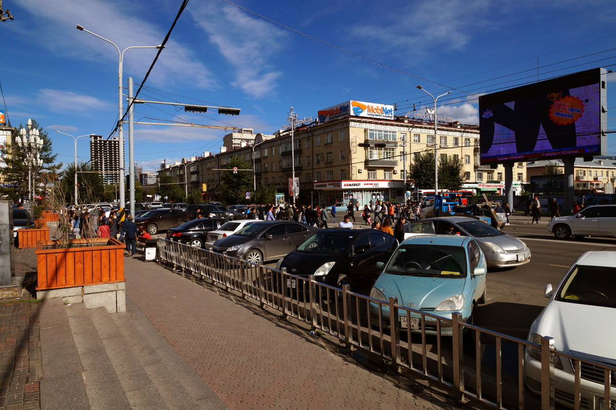 Zurück in Ulaanbaatar. Mit dem Bus erreichen wir vormittags schon wieder Ulaanbaatar; wir besuchen ein Kaschmir-Wolle-Outlet - ich kaufe mir nichts und wandere ein bisschen durch die Stadt. Dabei finde ich den Bogd-Khan-Palast vom zweiten Tag wieder. Anschließend geht es ins Einkaufszentrum Ikh Delgüür (auch State Department Store genannt).