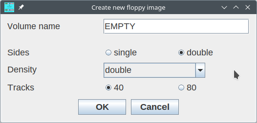 This function creates a new floppy disk image. Since TIImageTool 3, this image is created in memory at this point; hence, you do not need to decide whether this will be a sector dump, a track dump, or a HFE image. This will be relevant when you save the image to your PC file system.